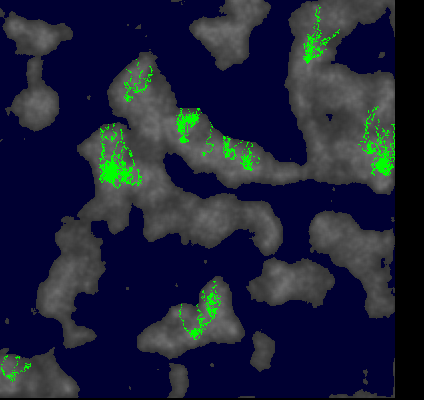 At this point I had decent-enough continents, although I was hoping to improve the shapes in future. I decided that the core idea was there and could be easily changed by a different function in future. I moved on.